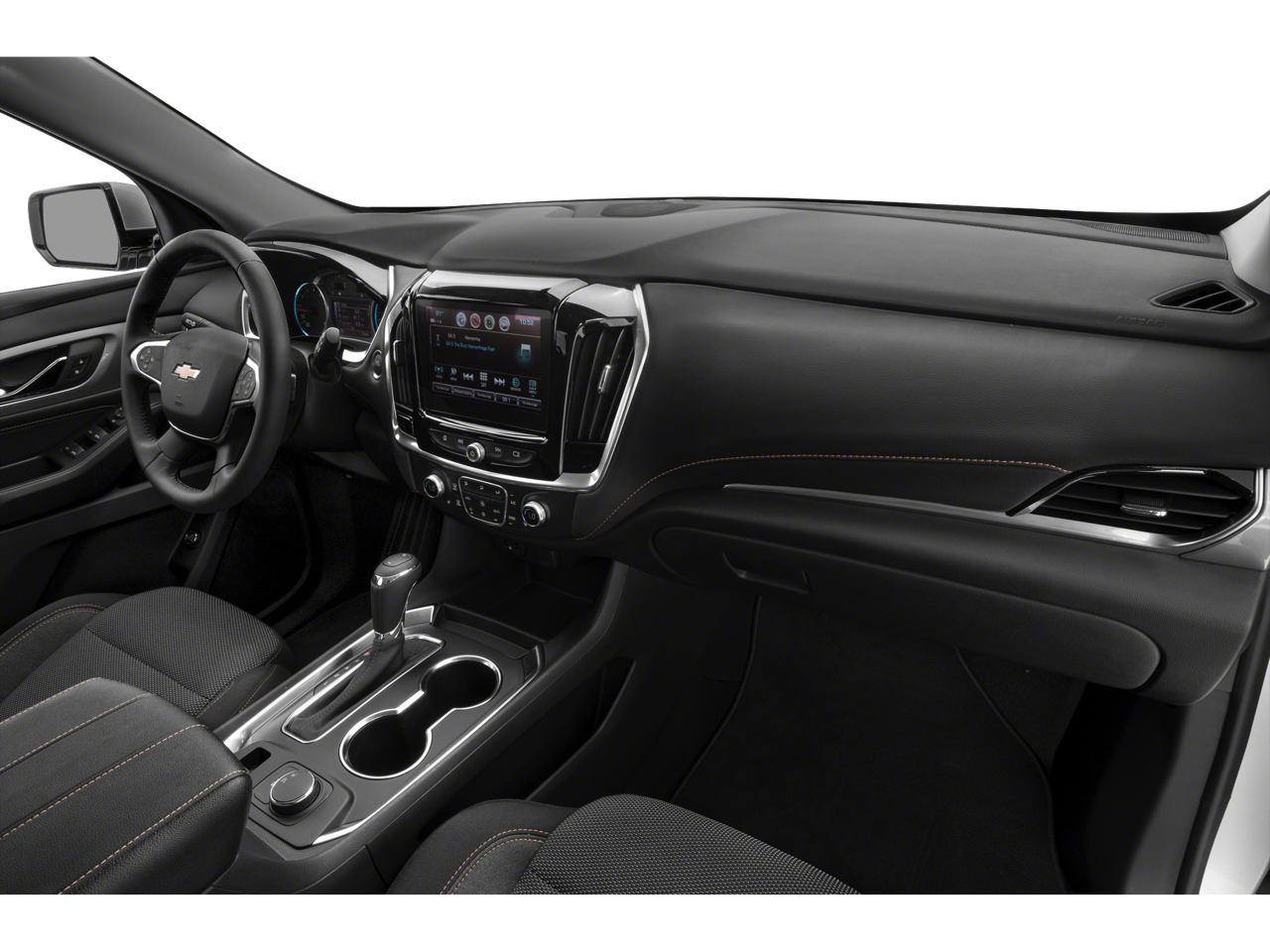 LT PREMIUM PACKAGE includes (IO6) 8" diagonal color touch-screen with Navigation and Chevrolet Infotainment, (UQA) Bose premium 10-speaker system, (DRZ) Rear Camera Mirror, (UVH) Surround Vision and (KI6) 120-volt power outlet Includes (SP6) 20" machined face aluminum wheels with Technical Gray pockets.), LPO, FLOOR LINER PACKAGE includes (RIA) front and second row all-weather floor liner, LPO and (RIB) third row all-weather floor liner, LPO and (CAV) integrated cargo liner, LPO, LICENSE PLATE FRONT MOUNTING PACKAGE (will be forced on orders with ship-to states that require a front license plate) , TIRES, P255/55R20 ALL-SEASON BLACKWALL, SURROUND VISION, BIRD'S EYE VIEW, INCLUDES REAR VISION CAMERA, SUNROOF, DUAL SKYSCAPE 2-PANEL POWER with tilt-sliding front and fixed rear with sunscreen, SUMMIT WHITE, SEATS, FRONT BUCKET (STD), SEATING, 7-PASSENGER (2-2-3 SEATING CONFIGURATION) (STD), REAR CAMERA MIRROR, INSIDE REARVIEW AUTO-DIMMING with full camera display.